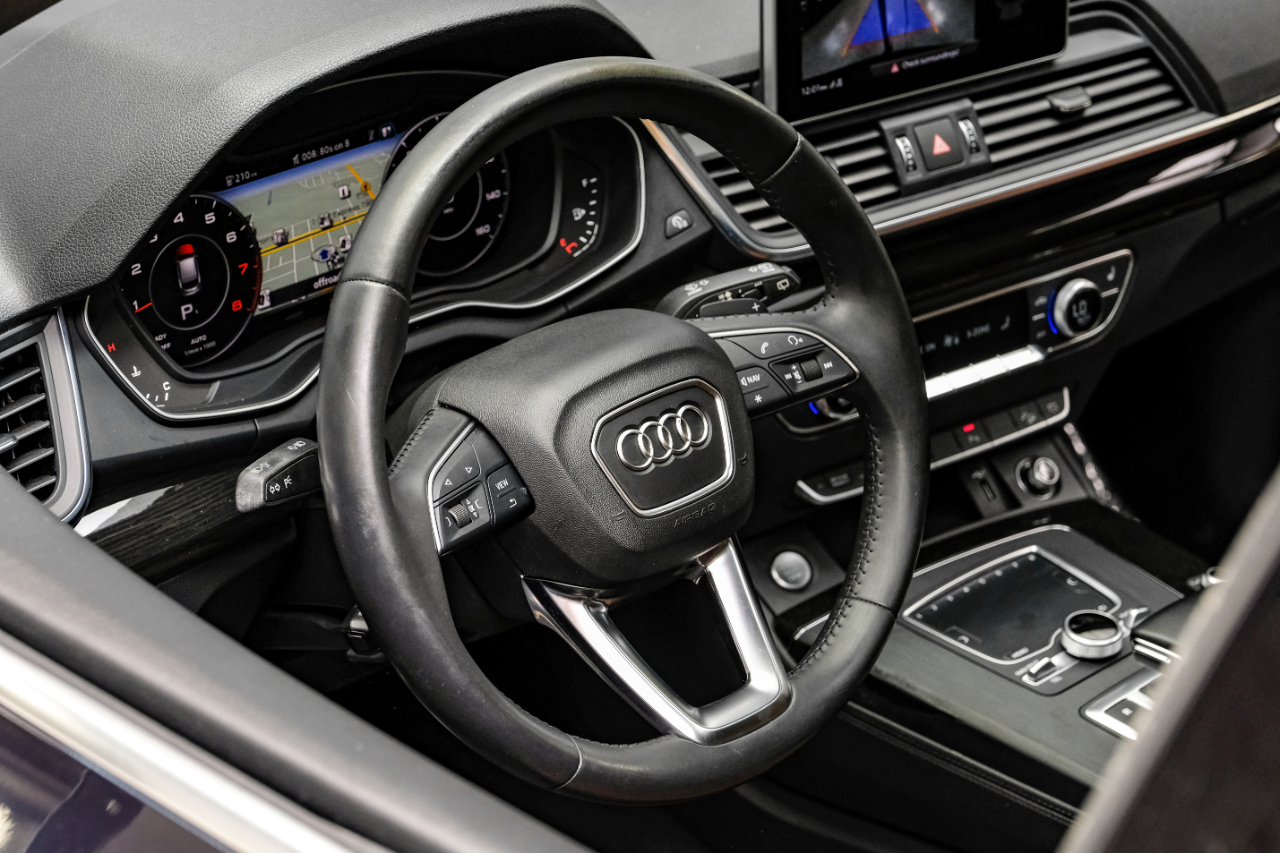 Step into luxury and style with this stunning Blue 2019 Audi Q5. This vehicle not only provides a smooth and powerful ride, but also ensures your safety with features such as child safety door locks, ABS brakes, and multiple airbags. The telescopic steering column allows for customizable comfort, while the front heated seats keep you cozy on chilly mornings. With power windows and adjustable power seats for both driver and passenger, finding the perfect driving position is effortless. Worried about security? Fear not, as this Audi comes equipped with vehicle anti-theft features to give you peace of mind. And for added assurance, a Carfax report is available to guarantee the vehicle's clean history. So why settle for ordinary when you can experience the extraordinary in this Blue 2019 Audi Q5.