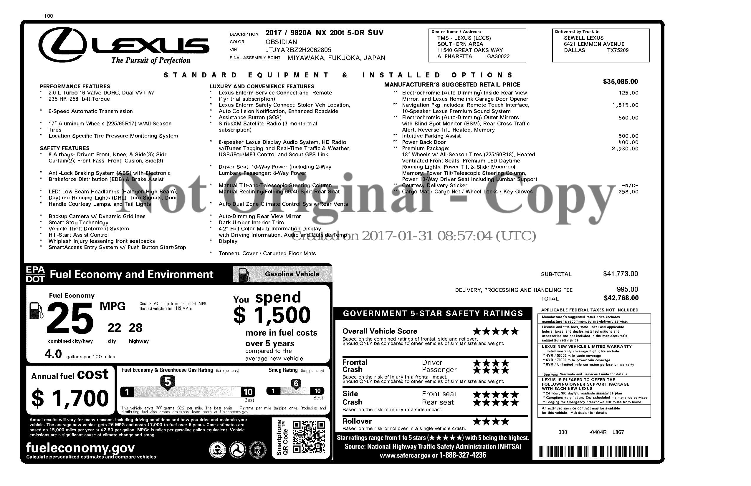 2017 Lexus NX 200t FWD